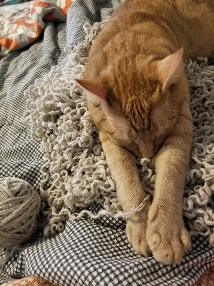 Ollie knows better to get involved with the yarn. Sleeping on my leg is his job.