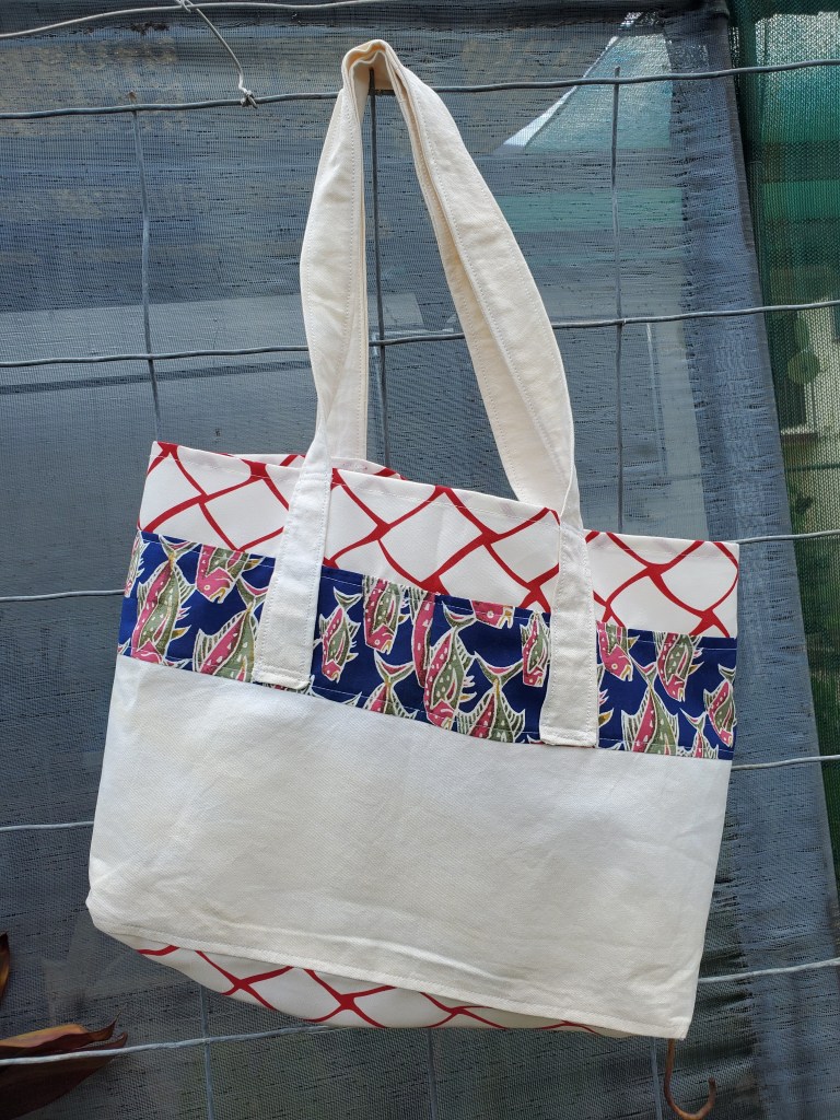 Since my machine has come out of hibernation, I start putting together totes with the scraps I have and fabric I’ve been thrifting. Most of it’s prototypes to find a tote shape that I like, has items that I think it needs–pockets, and made up mostly with up cycled material. Here’s a few that I’ve started with.