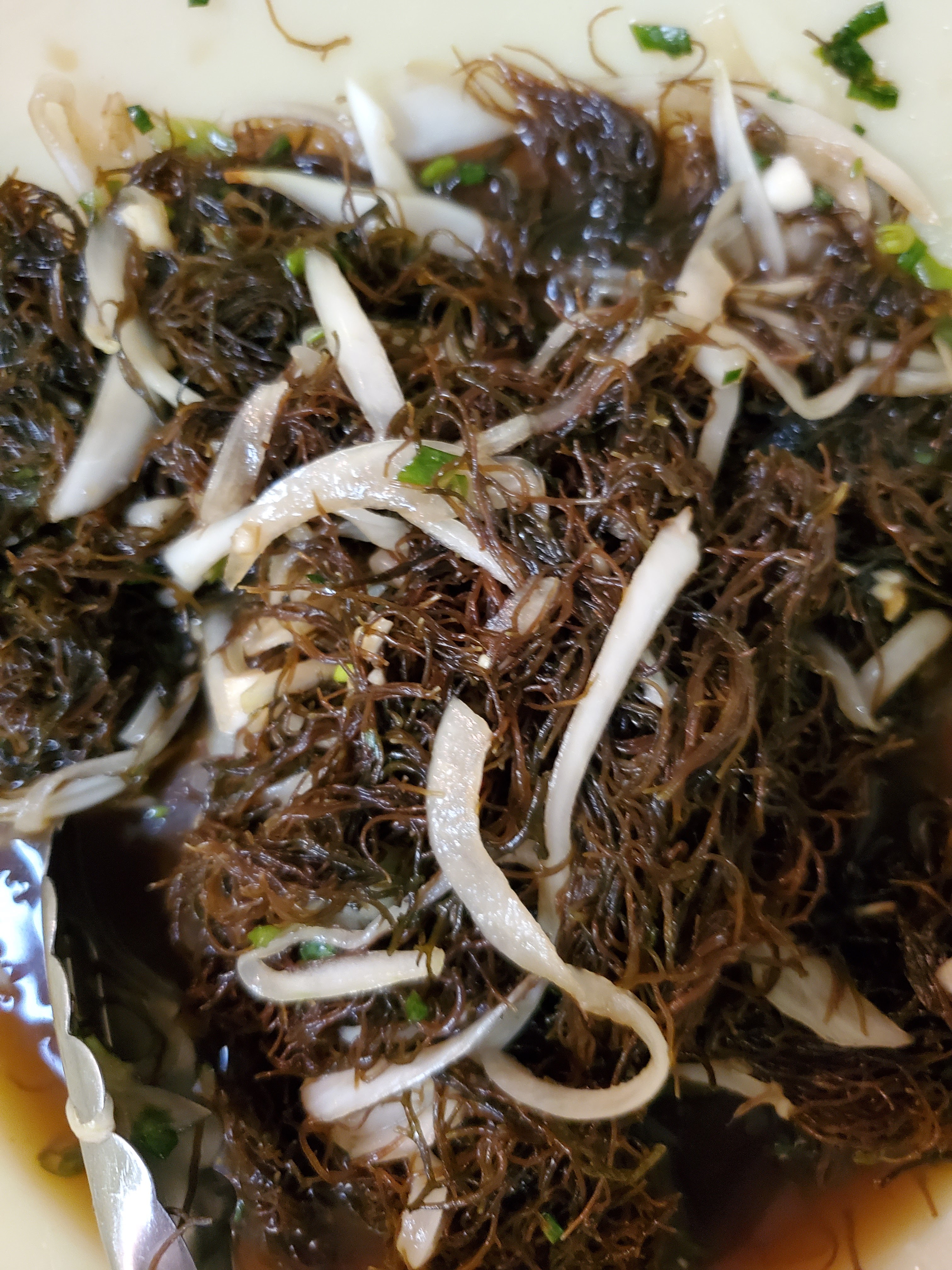 Coming back to Hawaii has triggered many food memories for me–shave ice (extra fine snow cone), seed (flavored preserved fruit), malasada (Portuguese yeasty donut), to name a few. Pickled ogo popped in my mind during my monthly girls’ zoom meetup. J was telling us about the Marine Learning program at Waianae High School, raising and selling ogo. That spiraled into talking about pickled ogo and ended with four of us buying 5lbs each.