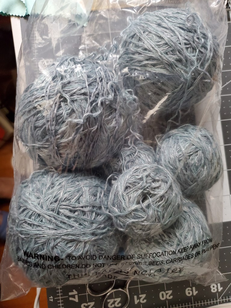 It looked hand knitted but had a Free People tag. It was linen, cotton, and rayon blend yarn of worsted weight. It was unravelling at the shoulder strap and I guess that what it got put back on the rack. Unravelling is good sign as I just want the yarn and would be taking it apart. The price was $8.49, less than one skein of this type of yarn and I probably get at three skeins worth.