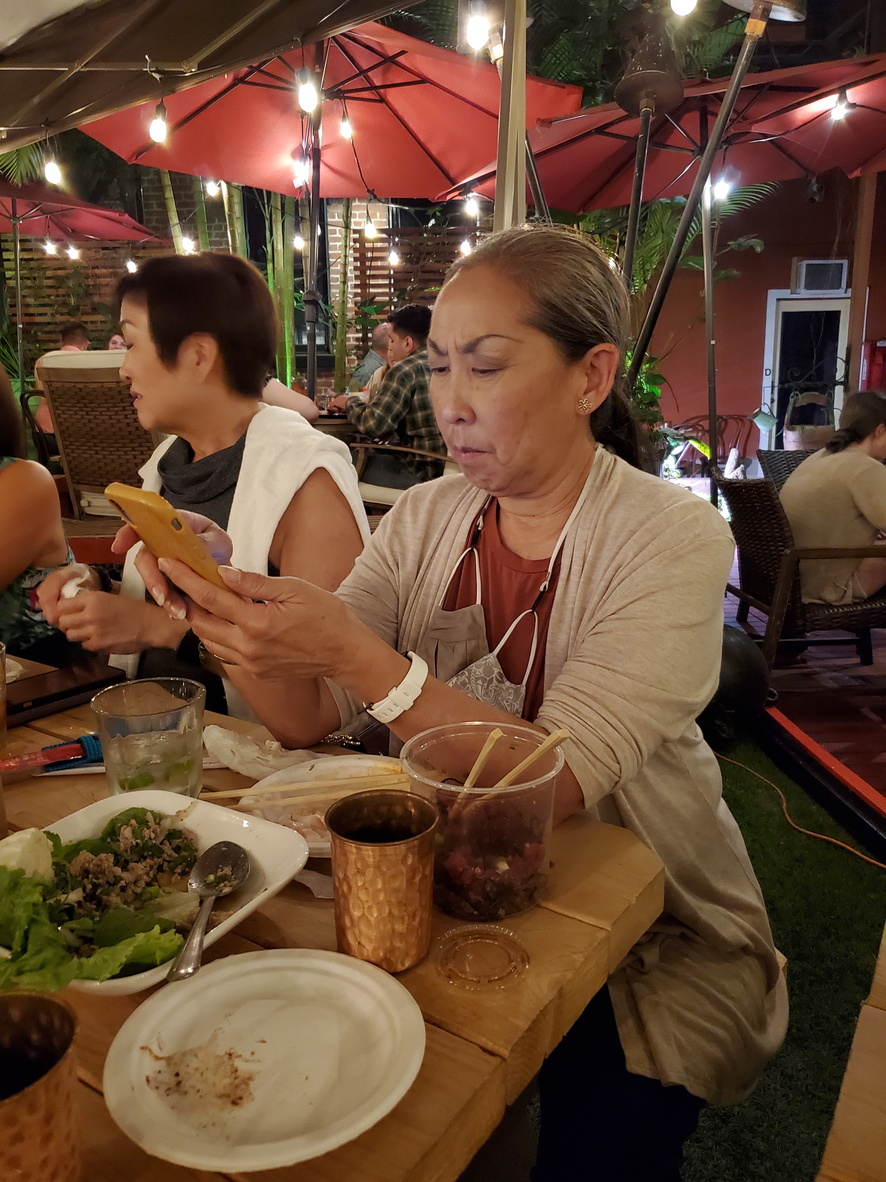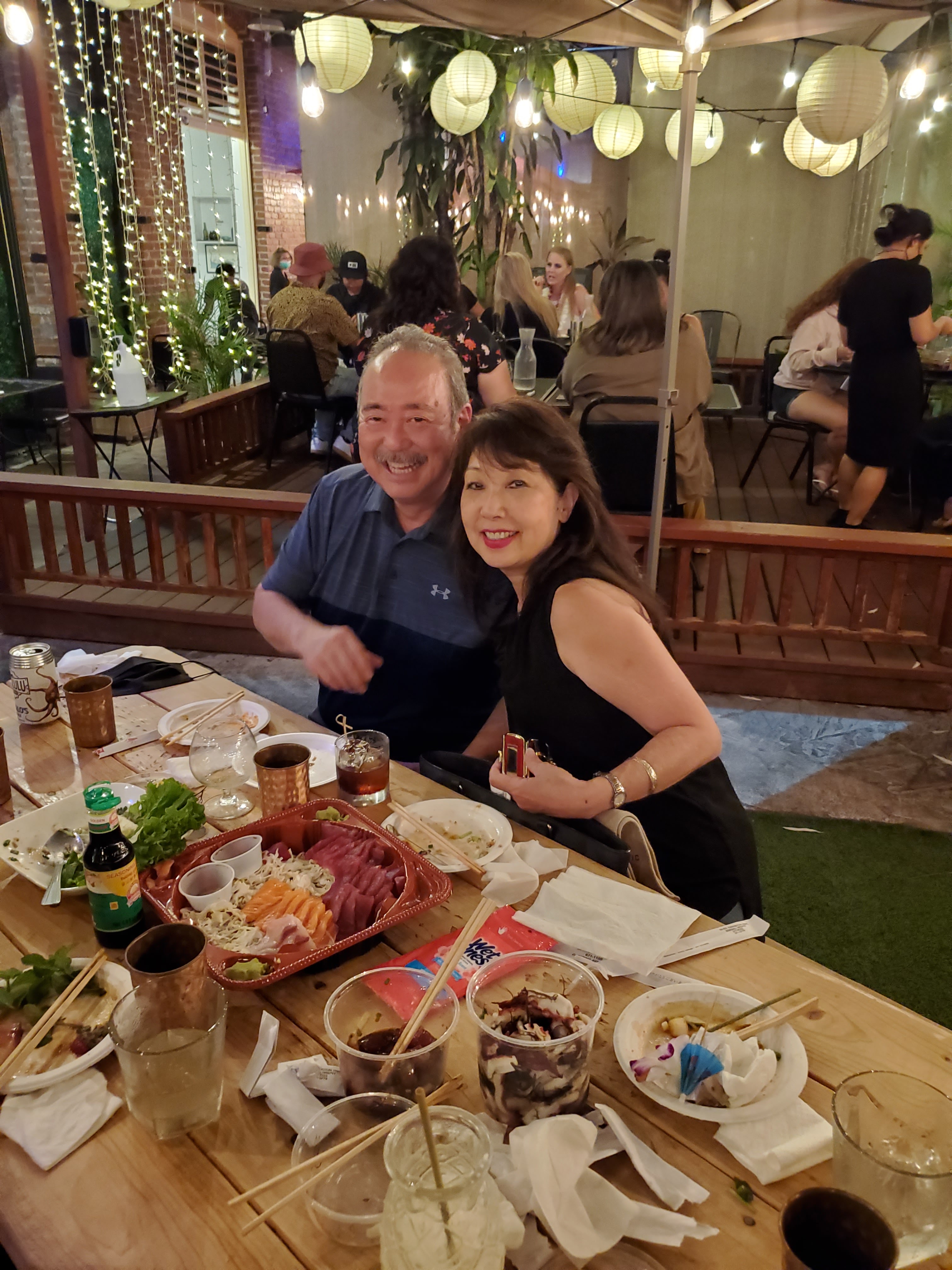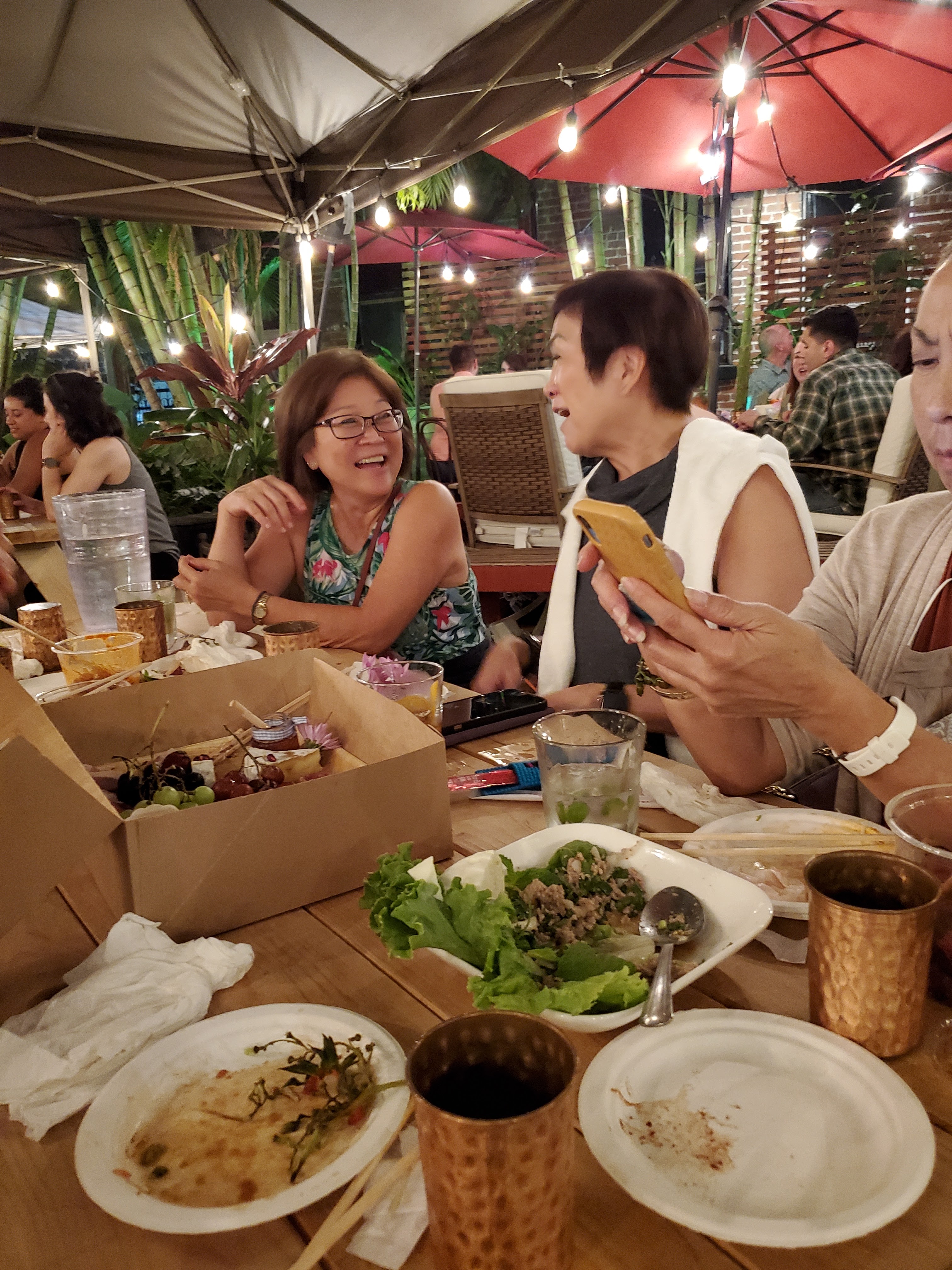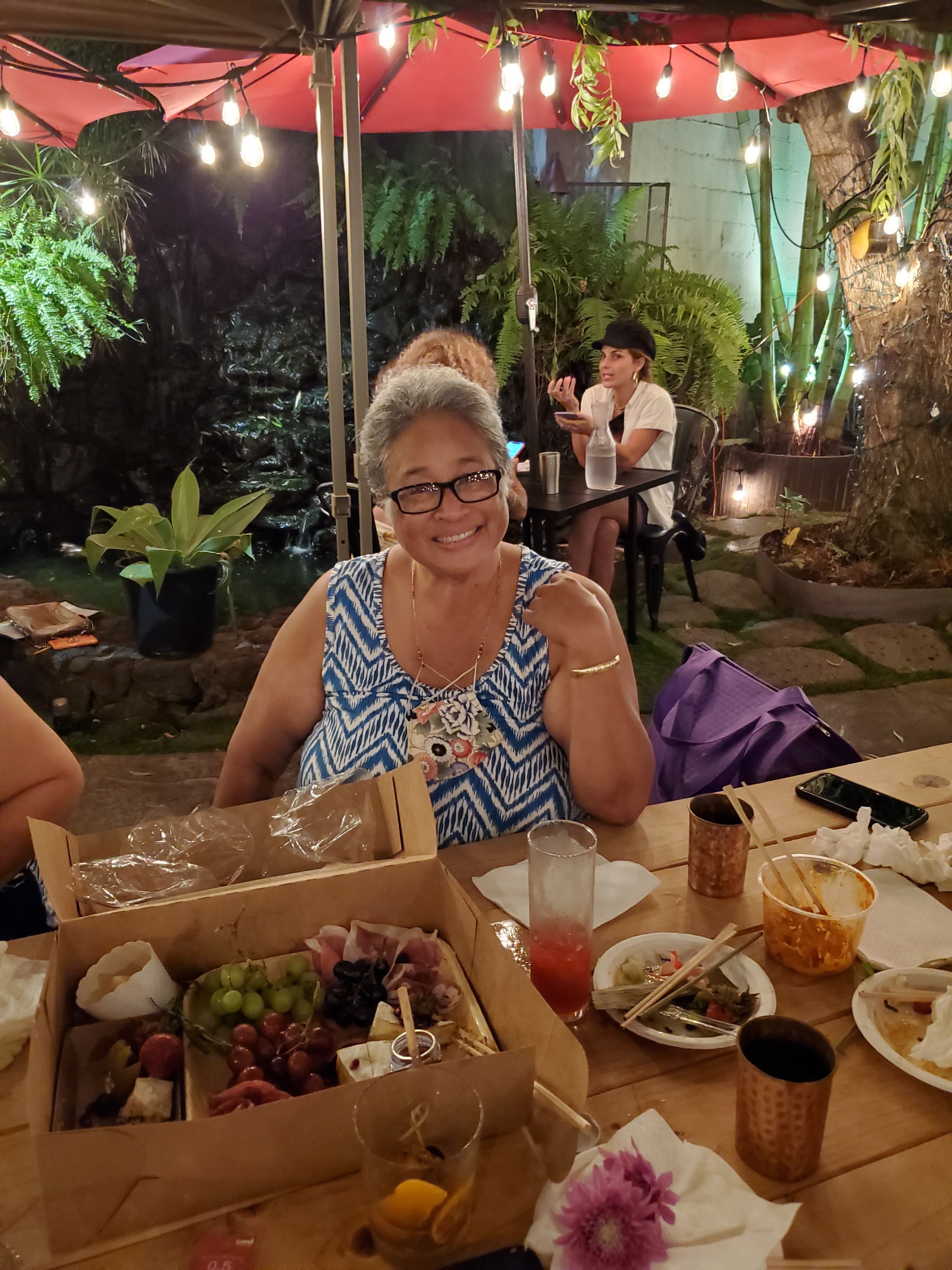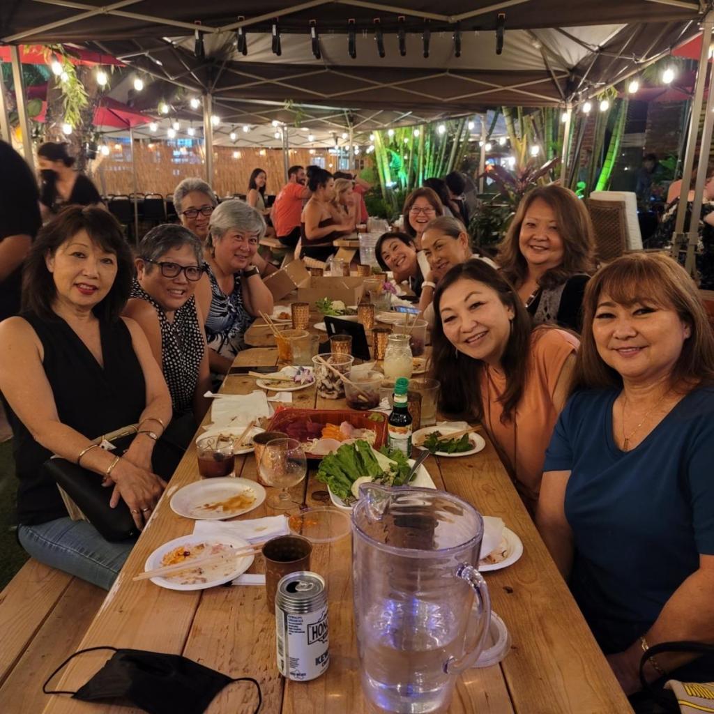 Once all of us got to Friday’s final destination, Skull & Crown, it was time for pupus (appetizers) and drinks. Here’s all of us eating, drinking, and talking way too much. Cathy asked to bring her husband Allen along as it’s been a long, challenging year without a vacation. He was a trooper and didn’t get annoyed with all our jabbering. Group shot photo credit: Allen Takayama
