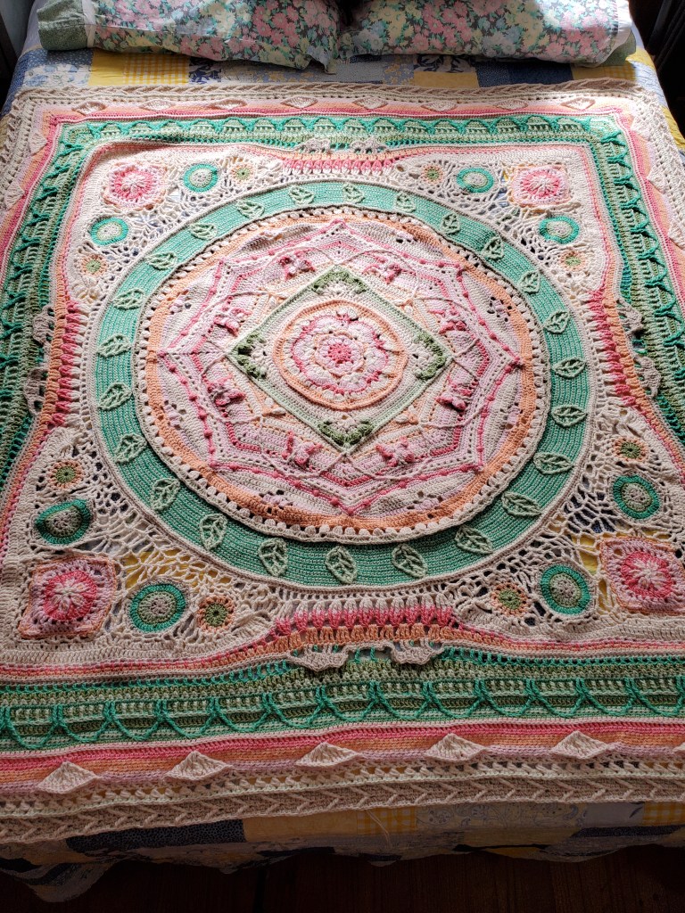 Woo hoo! I can’t believe I finished my Scheepjes CAL 2020 d’Historie Naturelle. This pattern was the most complicated piece I have done so far. I learned so many new stitches and new techniques. I’m so thankful I had that moment in my life that I thought I could make this blanket.