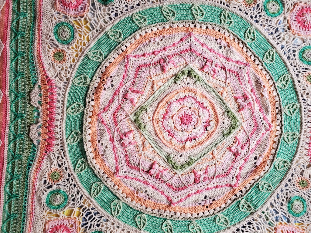 And oh my goodness, I don’t know what I would have done without Esther Dijkstra of It’s all in a Nutshell blog videos to get me through the entire piece, especially the lacy corner sections. Your voice (extremely calm) and helpful hints as if you knew where I would be struggling.