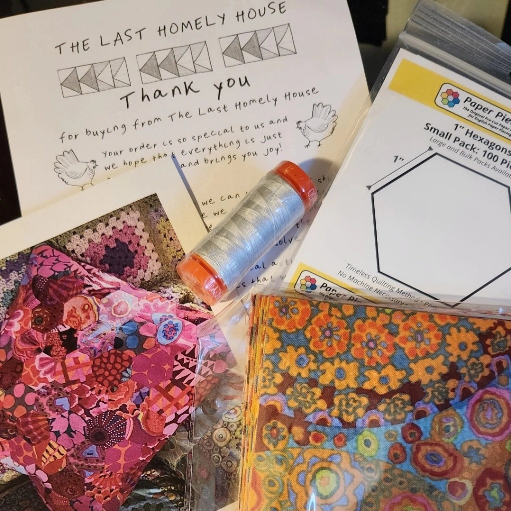 Here’s a sneak peek of more blooms from my stitching project I’m soon to begin. This is the Hexagon cushion kit from Kate at The Last Homely House. This is an English paper piecing (epp) project, my first. I’m using it as a gauge to see if I enjoy doing epp. Kate made a beautiful quilt for her granddaughter that inspired me to try out this kit. I hope I like.