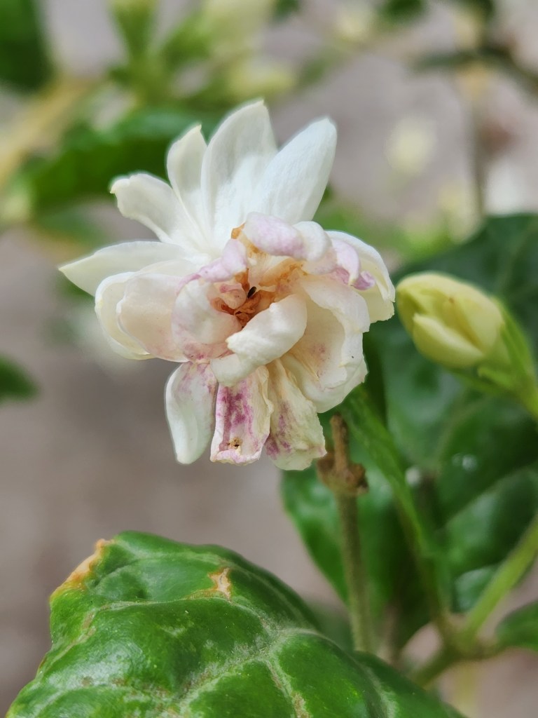 Mom trimmed it about a month and a half ago, and it recently started blooming. She’s so proud that she told me to share it with you. This plant’s variety is the double-flowered rose pikake.