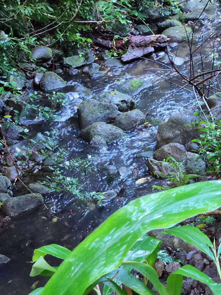 I don’t know how long we continued on, but we were lost. Somehow, we made our way back, without using ribbons (we couldn’t find them anymore), to the before the large stream crossing. We meet two hikers returning from the falls, who told us to follow the stream and look out for the pink ribbons with the black dots.