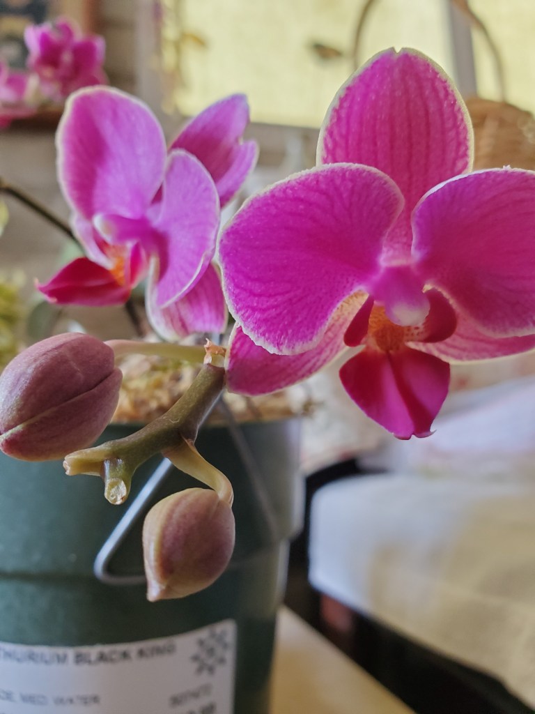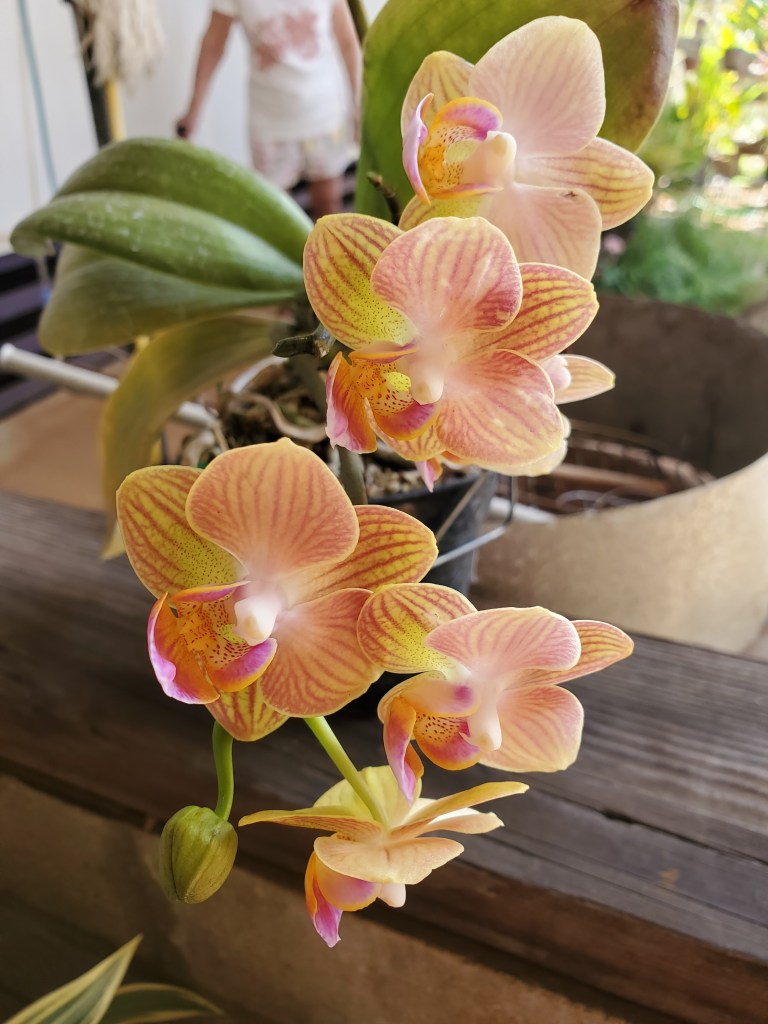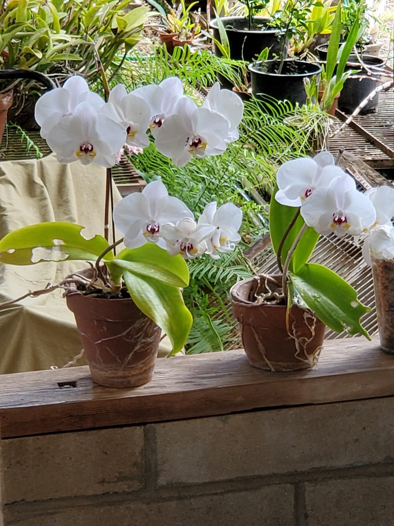 Cora’s orchids are having a very active blooming season this year. Though the orchids plants themselves need more care. Once the blooms are gone, will tend to them with some repotting the is very needed on several of them. We moved them in the patio so we can enjoy them together.