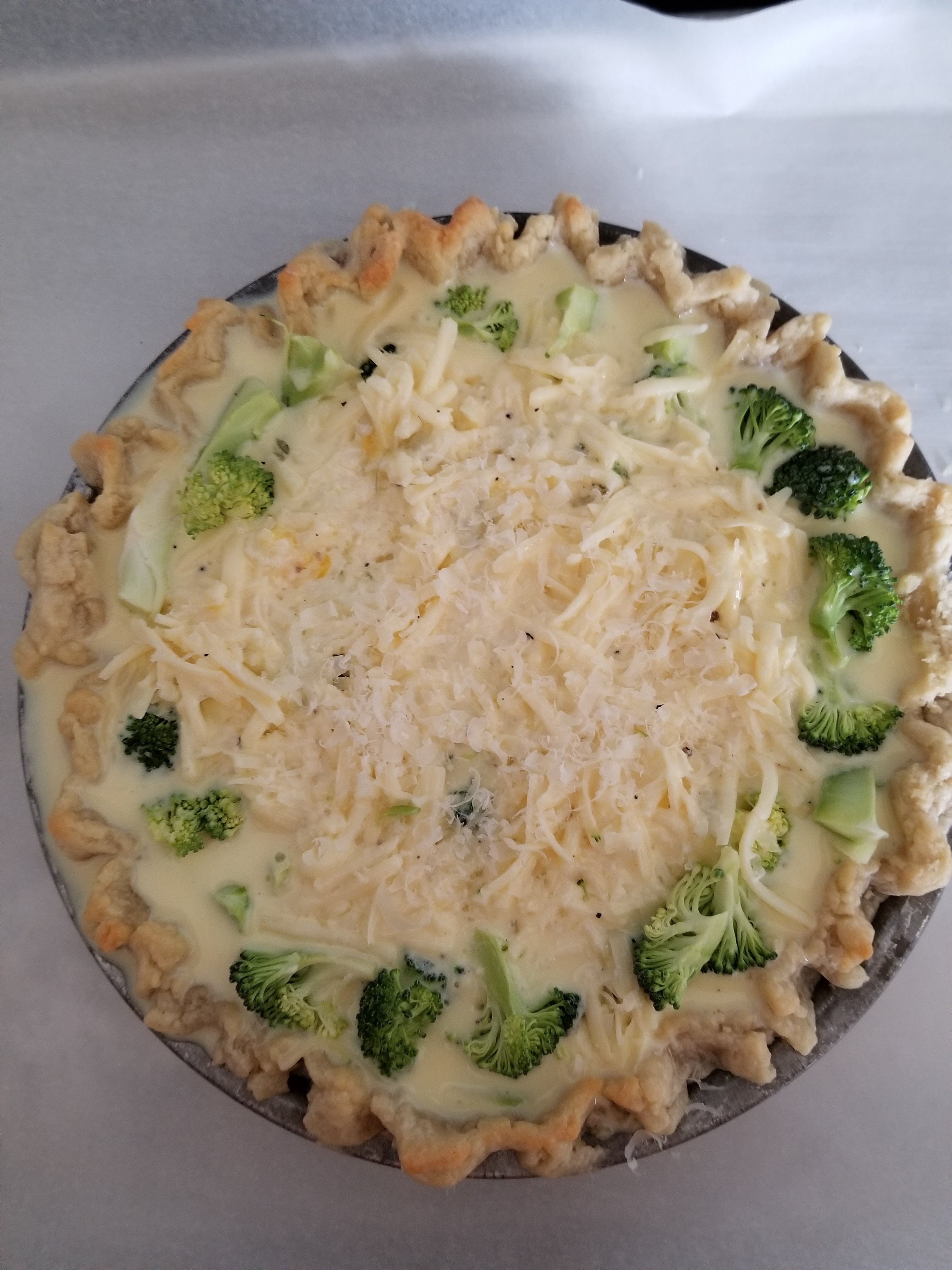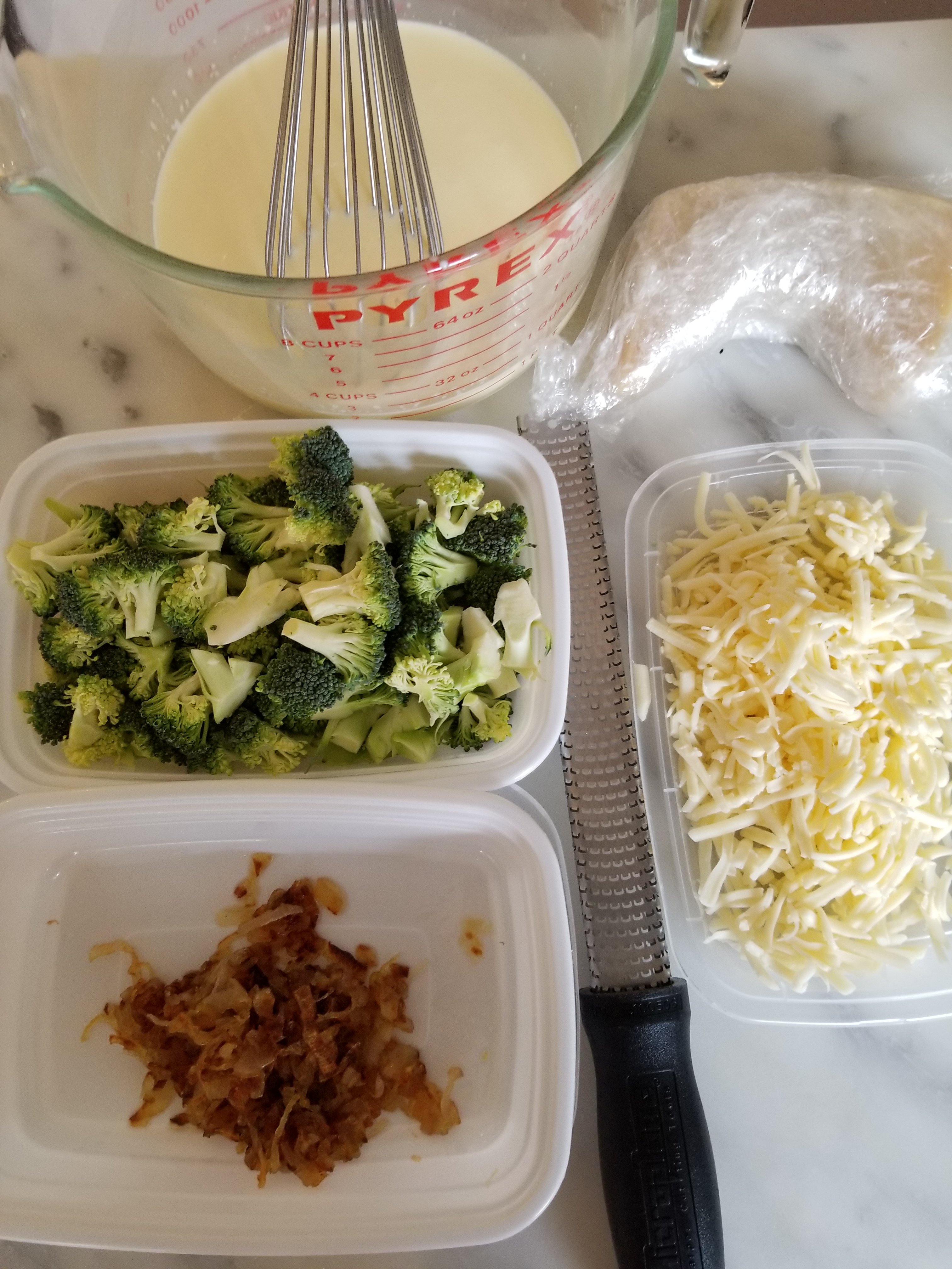 I used my favorite quiche recipe, Caramelized Onions and Zucchini Quiche. It was always a hit at my office parties. I had all the ingredients (well, almost) and had enough to make two. I used this quiche recipe from One Perfect Bite as my base. I tend to make it cheesier than the recipe calls for, and I ran out of milk, so I added heavy cream (how could that hurt it, haha).