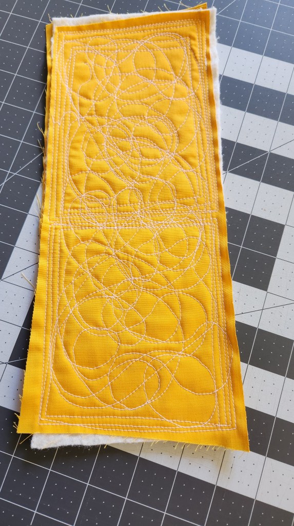 I didn’t know what I would do for the quilting. I hate seeing my wobbly stitch lines that should be straight on the quilt. And when I was testing out free motion quilting (which I didn’t do), I did some test quilting with random intersecting circles that I enjoyed. That was my plan.
