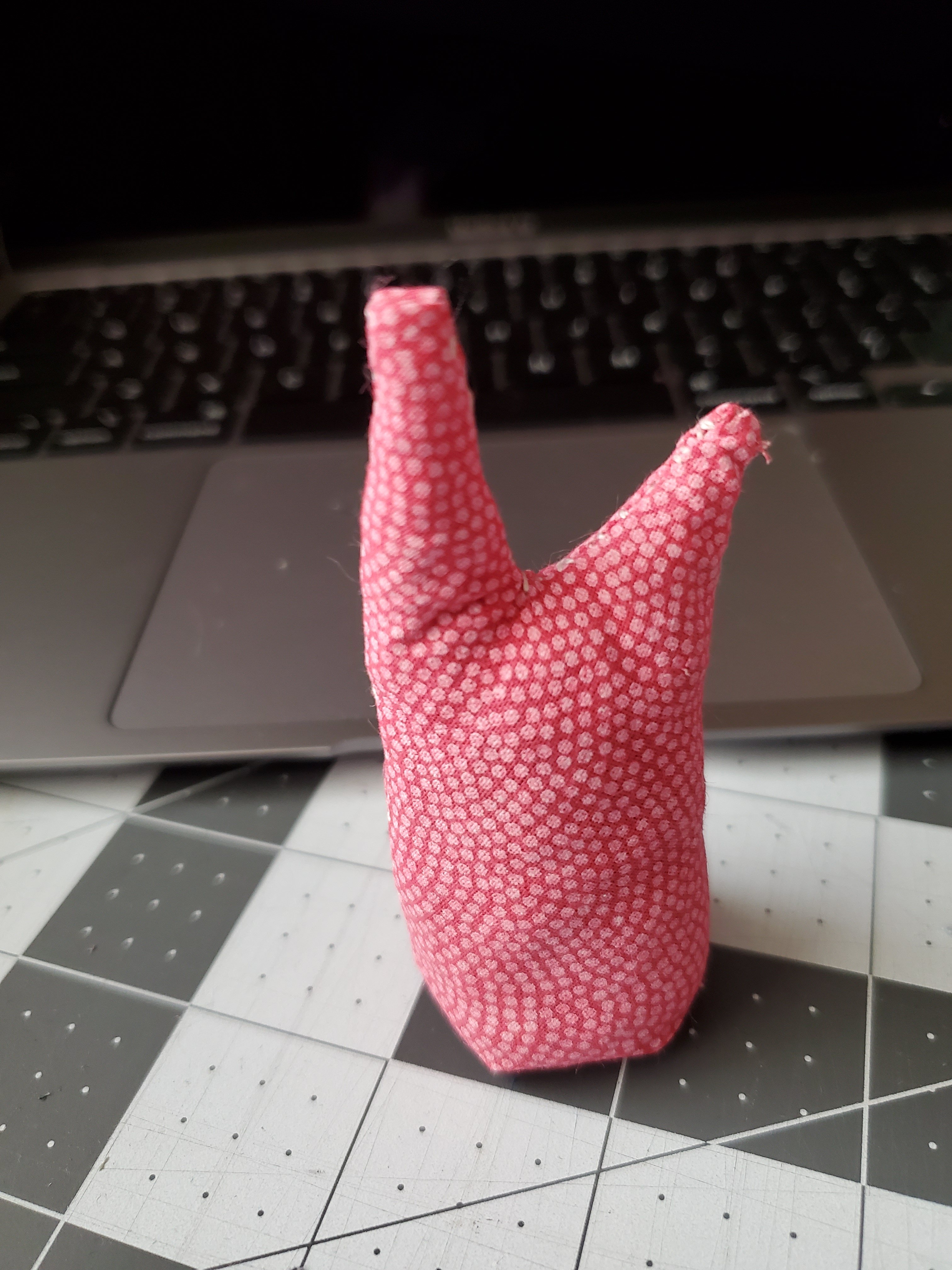 I have three bags of scraps from my cousin’s mask-making business. From medium-sized pieces to very tiny ones, I told him to give all to me. My first idea was to spin them into fabric twine or yarn, but my spinning skills need work. Still not to the point that I get enjoying it.